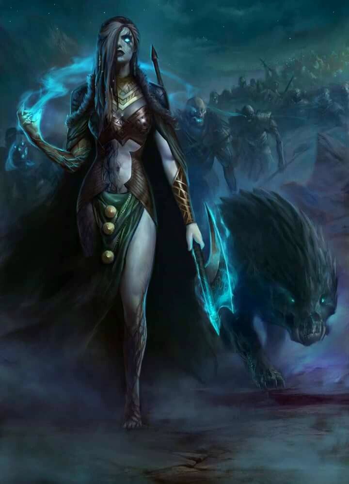 . В этой роли она повелевала душами тех мертвых, которые не погибли в бою, а ее царство Нифльхейм было холодным и нежеланным местом. Мысль о том, что она выглядит полумертвой, отражается в ее неспособности появиться на Земле в одиночку.