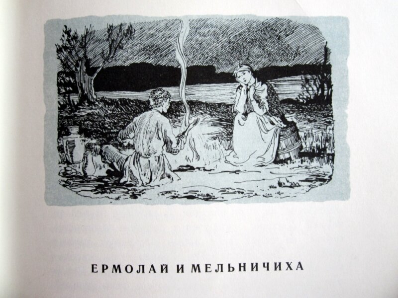 Тургенев заснул, а Ермолай зажарил на костре картошку. Проснувшись, писатель увидел, что рядом с Ермоламом сидит Мельничиха — женщина 30 лет, очень красивая. Ермолай тихо ей сказал: «Иди ко мне обижать, Арина Тимофеевна. Я побежал жену по делу». Мельничиха в ответ тупил глазами.