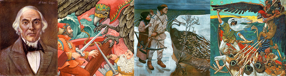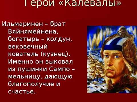 «Калевала» — карело-финский поэтический эпос, включающий 50 глав-рун. Книга составлена Элиосом Лённротом на основе фольклорных текстов.