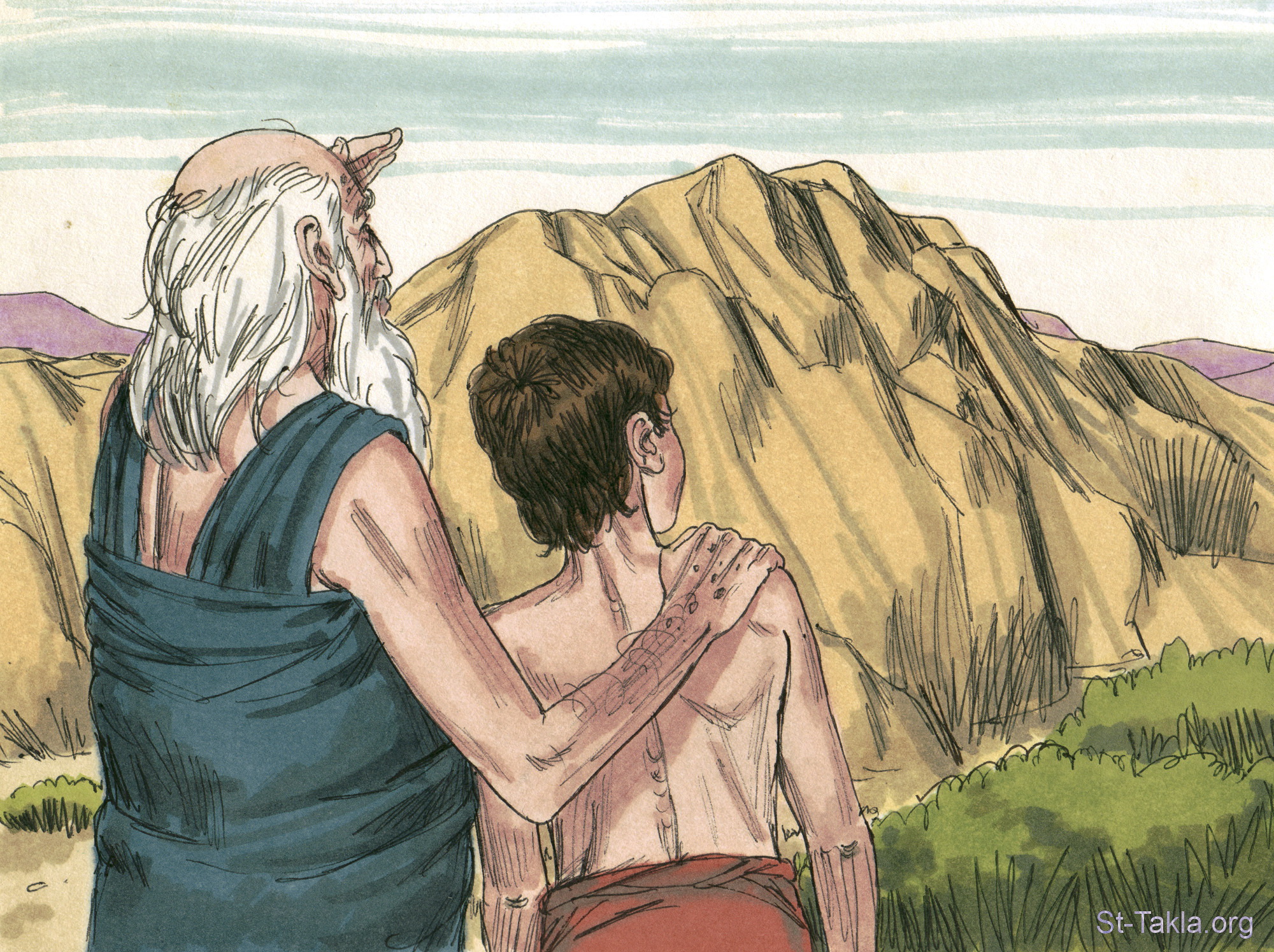 — Авраам! Не тронь отрока! Теперь Господь видит, что для Него ты не пожалел даже своего единственного сына. За такую любовь и послушание Господь благословляет тебя и даст тебе столько детей и внуков, сколько звёзд на небе и песка в море. И все народы земли благословятся через тебя.