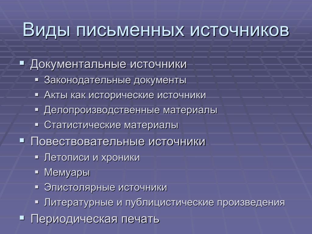 Классификация исторических источников, описание и примеры