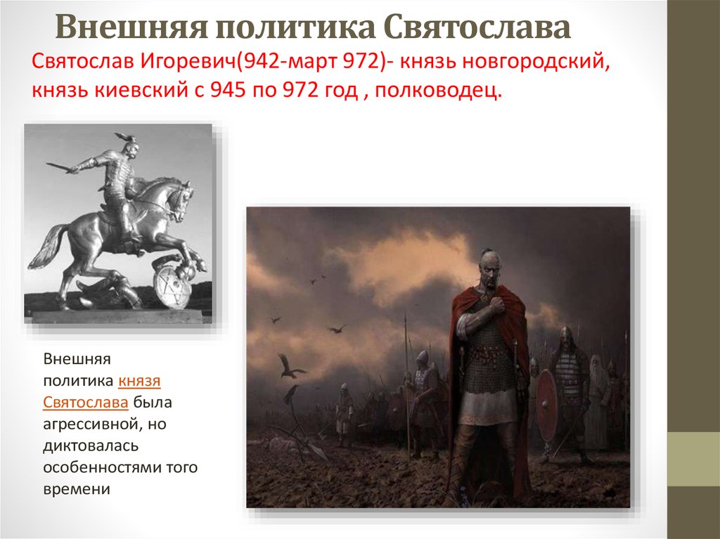 Характеристику Святослава следует начать с того, кем был этот русский князь.