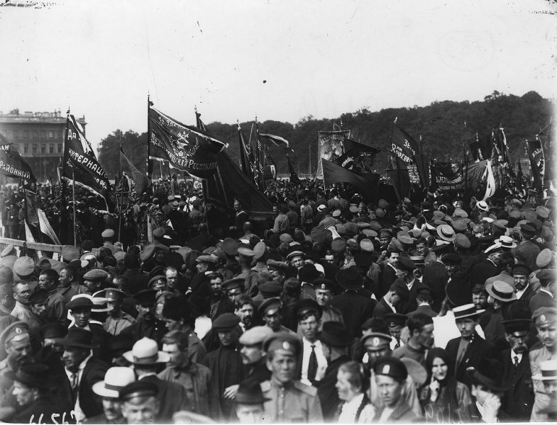 Солдаты, матросы и промышленные рабочие поднялись в Петрограде, столице России, в течение недели стихийных вооруженных демонстраций против Временного правительства России. Обвиняя большевиков в событиях, Временное правительство расправилось с большевистской партией, арестовав многих ее членов и заставив партию разойтись. После этого подавления видный лидер большевиков Владимир Ленин бежал в Финляндию, а Лев Троцкий был среди арестованных. in wikipedia