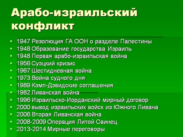 В 1967 году произошла Шестидневная война, в ходе которой Израиль, опасавшийся роста вооруженных сил арабских соседей, нанес по ним упреждающий удар, разгромив их вооруженные силы и заняв огромные (относительно самого Израиля) территории. Им были захвачены Синайский полуостров и сектор Газа у Египта, Голанские высоты у Сирии, Западный берег реки Иордан и восточный Иерусалим у Иордании. Голанские высоты и восточный Иерусалим были аннексированы Израилем, Синайский полуостров был возвращен Египту в 70е-80е годы, а вот сектор Газа и Западный берег остались под военным контролем (фактически военной оккупацией) Израиля вплоть до наших дней.