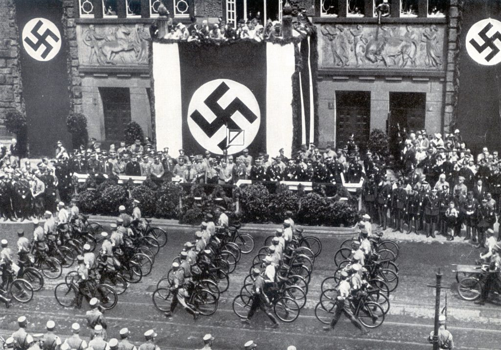 После того, как нацисты пришли к власти в Германии в 1930-х годах, для немцев стало обычным приветствовать друг друга жесткими руками и словами «Хайль Гитлер». «Немецкое приветствие», как стало известно, было ритуалом культа Адольфа Гитлера. При нацистском режиме от немцев ожидалось публичное подчинение « фюреру » (лидеру) в квазирелигиозных формах. Например, они даже салютовали статуям Гитлера.