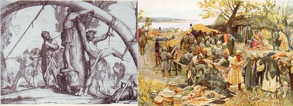 Наша летопись не знает жутких подробностей смерти Игоря. Но не являются ли косвенным намеком на них слова, которые летописец приписывает древлянским послам, сброшенным по приказанию Ольги в яму, где их и засыпали живьем: «Пуще нам Игоревой смерти».