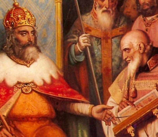 Карл Великий (*742–†814 н.э.) был королем франков с 768 г. н.э., с 774 г. н.э. также королем лангобардов, а в 800 г. н.э. он был коронован папой императором и августом. Соответственно он стал официальным защитником западноевропейского христианства. Карла Великого считали основателем европейской культуры — «отцом Европы». Это кажется большим преувеличением.