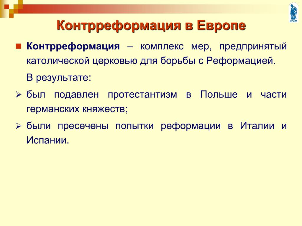 7. Какое значение имела контрреформация? Как изменилась политика римско-католической церкви?