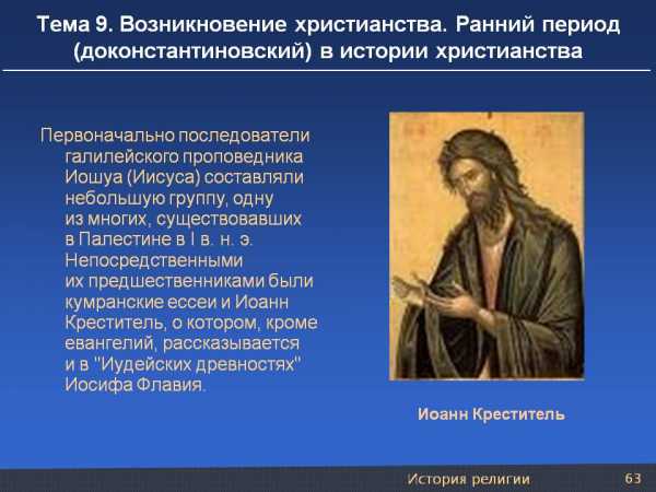 Христианство основано на учении Иисуса Христа, жизнь которого подробно преподнесена миру в Новом Завете. Христианство возводит Христа, появившегося на свет в Назарете, в ранг Мессии, или если сказать проще – в ранг Спасителя человечества. Название этой мировой религии происходит от греческого «мессия» или «помазанник».