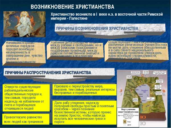 Возникновение христианства принято относить к I веку нашей эры, считается, что именно от евреев эта вера пошла по всему миру (да-да, куда уж без них). Стоит отметить, что в то время территория Палестины, откуда данная религия стала распространяться по свету, принадлежала Римской Империи, однако у римлян она не являлась государственной религией.