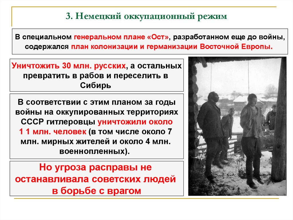 В 1941 году ошеломляющие успехи блицкрига прекратились, когда они были использованы против хорошо вооруженной, организованной и многочисленной русской армии, которая могла поглотить массовые жертвы. Немецкая армия, прорвавшая оборону столь многих стран, наконец нашла стену, которую не смогла сломать, столкнувшись с русской армией. В том же году прибыли американские войска, чтобы атаковать немецкие позиции с запада. Теперь наступательная немецкая армия оказалась зажатой между двумя оборонительными фронтами.