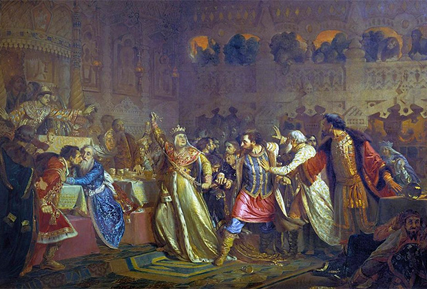 Иван III разрывает ханскую грамоту. Шустов Н.С.Но самое главное, София Фоминична настойчиво и последовательно поддерживала освободительную политику супруга против Золотой Орды.