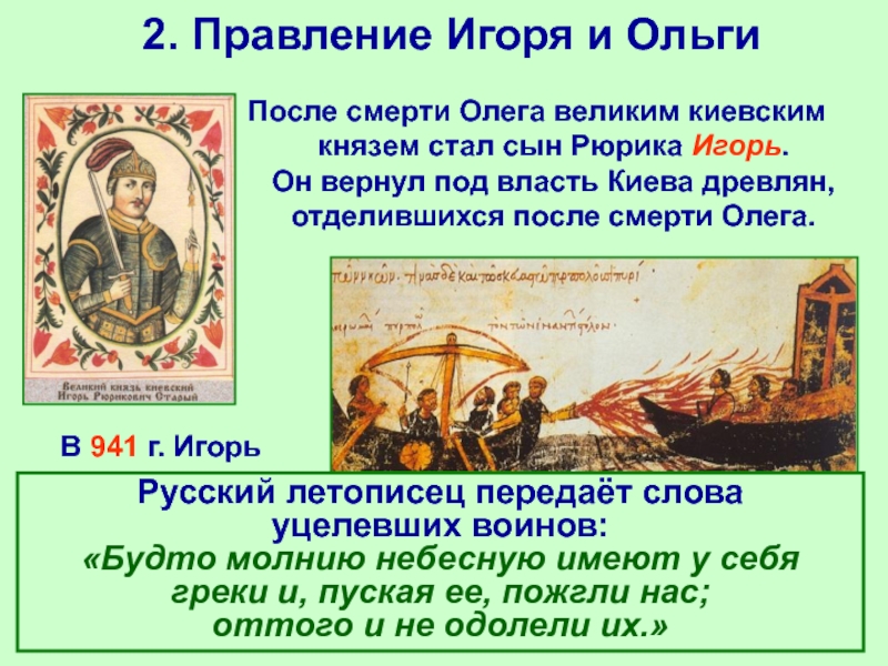 1.Он создал могущественное древнерусское государство, простирающееся от берегов Балтики до Днепровских порогов.