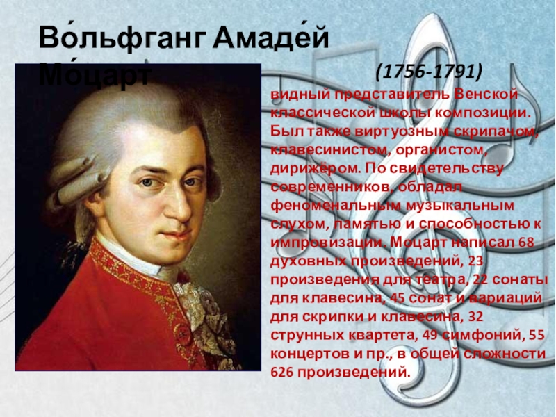 Моцарт – один из самых выдающихся композиторов в истории человечества.