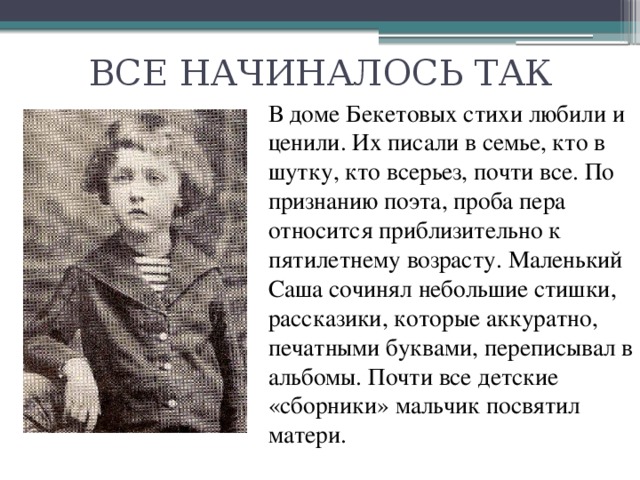 Свои первые стихи Александр Блок написал в пятилетнем возрасте.