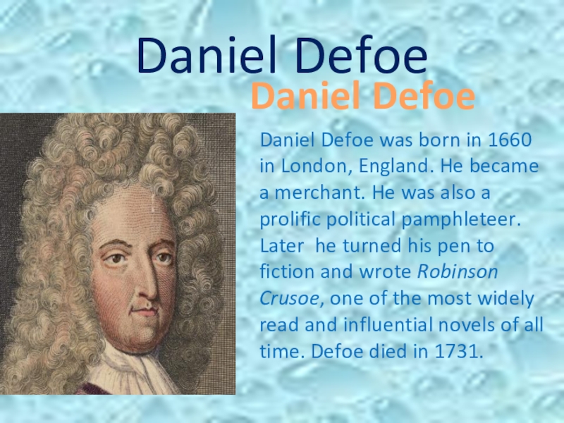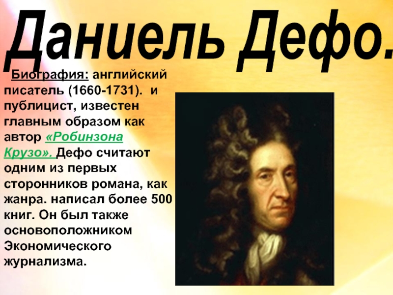 Итак, перед вами краткая биография Даниеля Дефо (интересные факты про Даниэля Дефо читайте здесь).