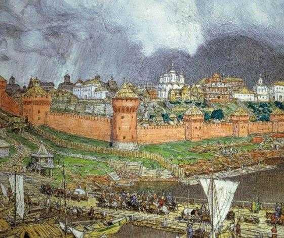 (Кремль при князе Московском Дмитрии Донском. XIV век. Картина А. Васнецова)