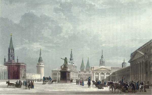 1823 год, свеженькая Никольская башня после восстановления, красного цвета.