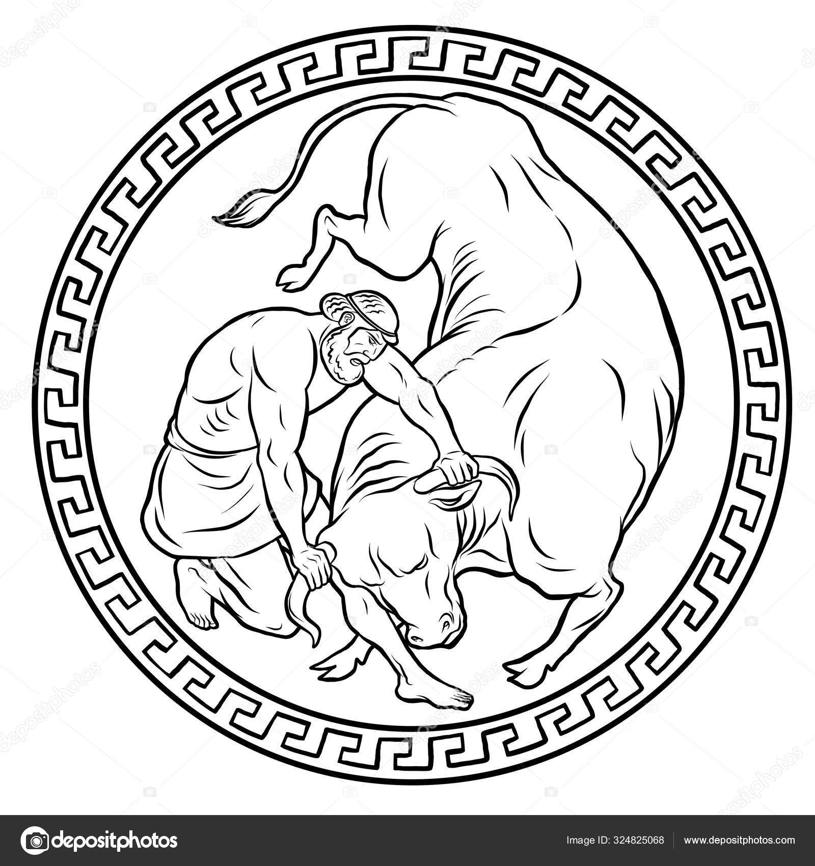 Геракл из Древней Греции Геракл, пытающийся приручить великого критского быка.