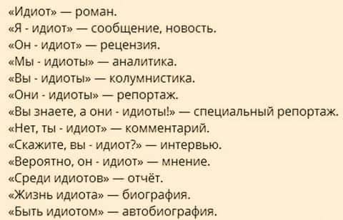 ИдиотДавайте более подробно рассмотрим Идиот , сосредоточившись на тоне, точке зрения, стиле письма и темах.
