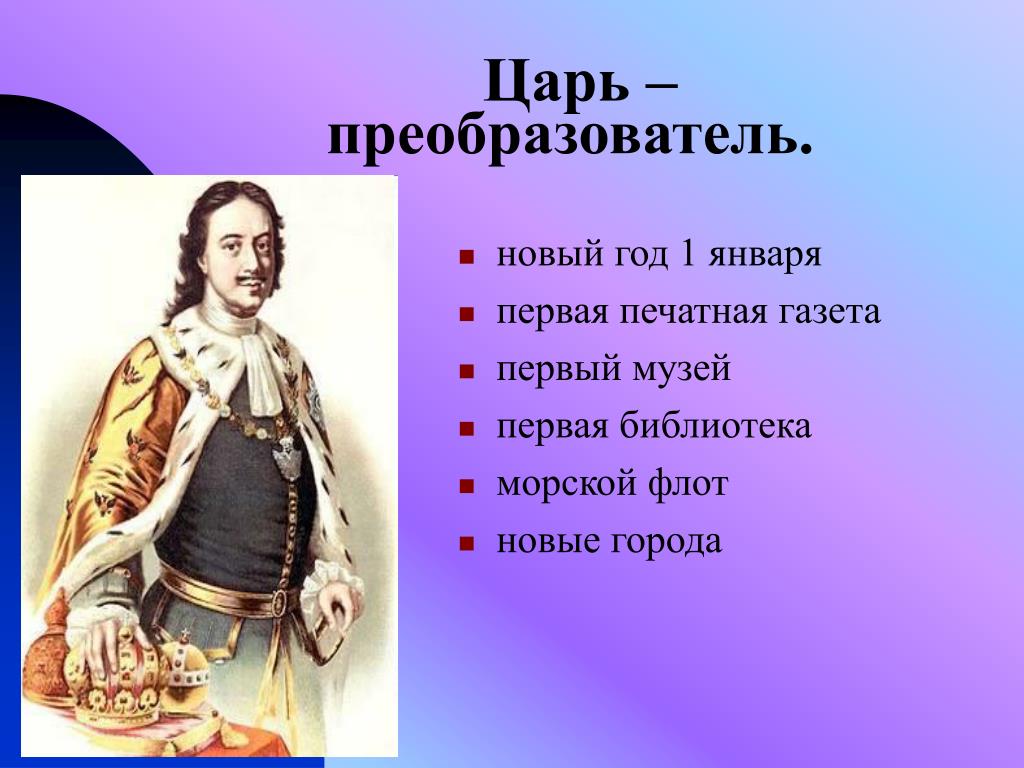 Реформы и завоевания Петра Великого сделали Россию одной из ведущих военных и промышленных держав Европы. Петр создал в России новую культурную среду, изменил экономику, государственное устройство, бытовой уклад, питание, моду и даже досуг.