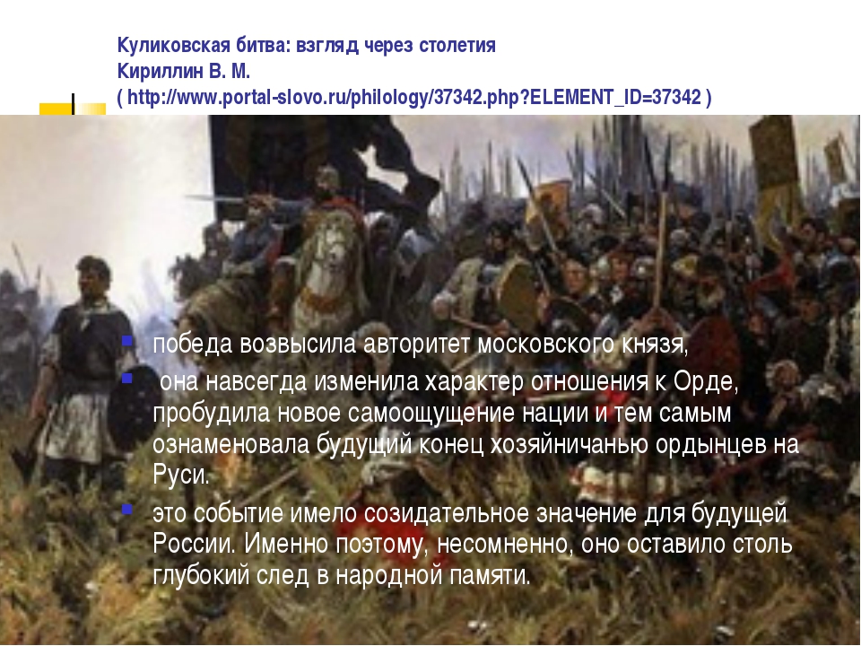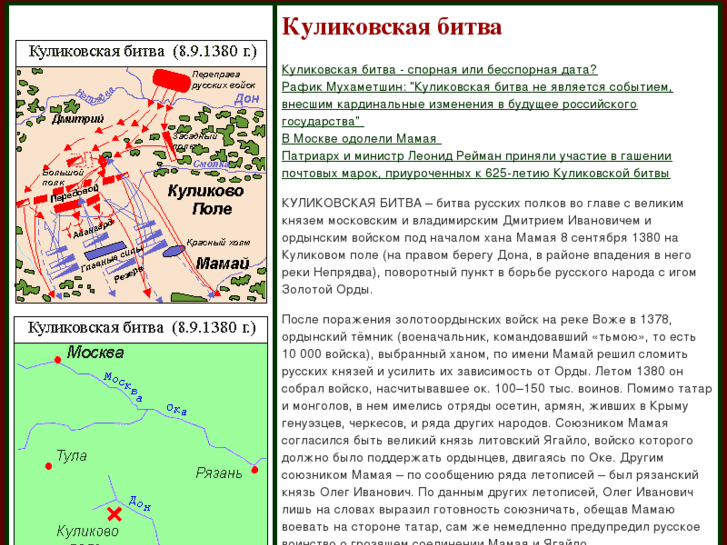 Куликовская битва, положившая начало освобождению Руси от татаро-монгольского ига, одно из самых выдающихся событий в истории России.