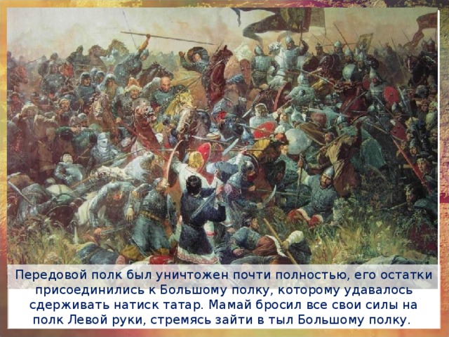 Но это вовсе не значило, что русское войско обязательно одержит победу. Мамай мог в любой момент изменить первоначальный план и направление главного удара. Для него не имело принципиального значения, с какой стороны гнать неверных.