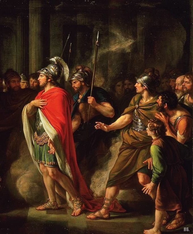 Эней был троянским героем в греческой и римской мифологии. Он был одним из немногих, кому удалось избежать резни в Трое и, наряду с Гектором, одним из самых храбрых защитников. В ту ночь, когда греки с помощью деревянного коня вторглись в Трою и начали кровавую бойню, Энею, сыну Венеры и Анхиза, приснился зловещий сон. Гектор встал перед ним и приказал ему бежать.