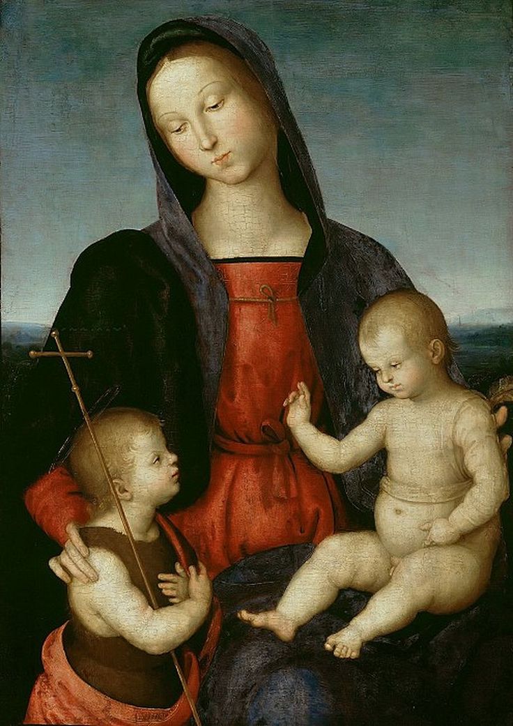 Вверху: Рафаэль, Италия, 1483-1520 Маленькая Мадонна Каупер (фрагмент) около 1505 г., дерево, масло Коллекция Уайденера, Национальная художественная галерея, Вашингтон, округ Колумбия, 1942.9.57