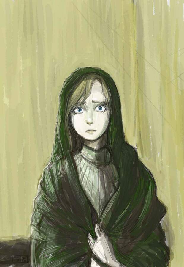 «Ее даже нельзя было назвать и хорошенькою, но зато голубые глаза ее были такие ясные, и, когда оживлялись они, выражение лица ее становилось такое доброе и простодушное, что невольно привлекало к ней».