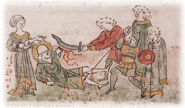 “И ворвались двое убийц, и набросились на него, и князь швырнул одного под себя, а другие, решив, что повержен князь, впотьмах поразили своего; но после, разглядев князя, схватились с ним, ибо он был силен.И рубили его мечами и саблями, и раны копьем ему нанесли» (Ипатьевская летопись).