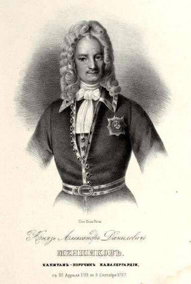 Он быстро поднялся по служебной лестнице, стал командующим генерал-фельдмаршалом русской армии и в конце концов был назначен губернатором Санкт-Петербурга. [3] Его отличала военная доблесть, а близкая дружба с царем вознесла его на вершину богатства и власти. Он стал графом в 1702 г. и князем в 1705 г. и фактически стал правителем страны на несколько лет после смерти Петра в 1725 г. Но в 1729 г.его враги, старое русское дворянство, добились его ссылки, и в том же году он умер в Сибири.