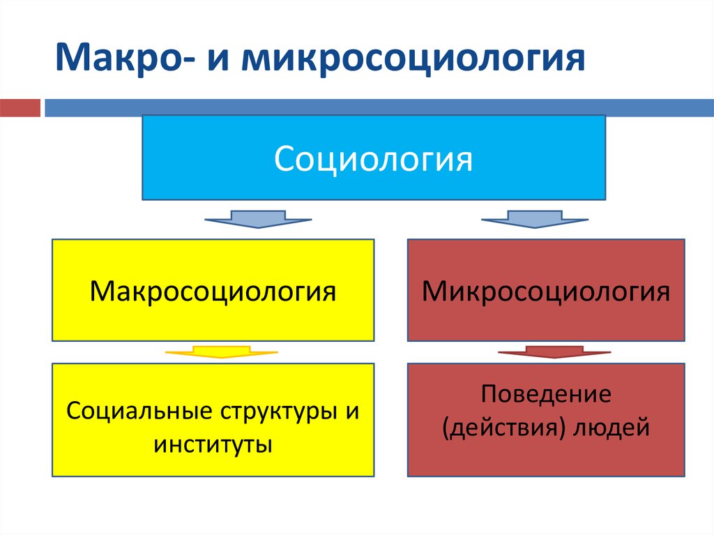 д. Более 100 институтов. Микросоциология — третий уровень изучения общества. Приверженцы микросоциологии считают, что самое главное понять, познать деятельность отдельного человека, мотивы, характер действий, стимулы и препятствия.