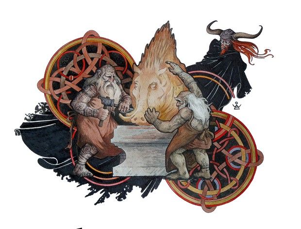 - Сехримнир — громадное существо похожее на вепря. Каждый день жертвует собой, чтобы накормить мясом воинов Вальгаллы.