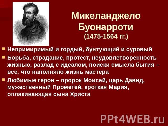 - Имя: Микеланджело Буонарроти