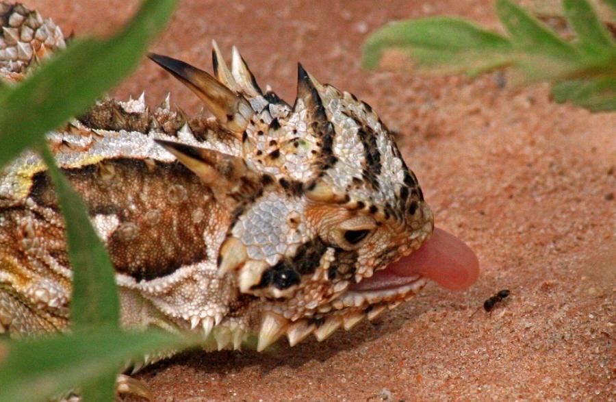В местах обитания этих ящериц мало воды. У них есть ряд бороздок вокруг головы, которые ведут к уголкам рта. Это необходимо для сбора росы, которая оседает на их теле.