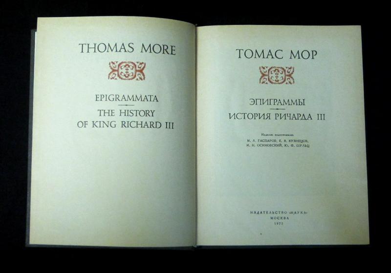 Поскольку « Утопия » — единственная книга Мора, о которой когда-либо слышало большинство людей, складывается общее впечатление, что он — человек с одной книгой. На самом деле он был плодовитым писателем, но, поскольку многое из того, что он написал, было теологическим по своей природе и написано на латыни, с тех пор оно не имело большого распространения. Интересно отметить, что в начале своей карьеры он опубликовал сокращенный перевод биографии блестящего итальянского гуманиста Пико делла Мирандула (9).0032 Жизнь Джона Пикуса, графа Мирандулы ). Самой известной из его работ после Утопия была История Ричарда III. В течение нескольких столетий после появления этого произведения оно прямо или косвенно оказывало большое влияние на интерпретацию характера Ричарда и событий его правления. Шекспировский Ричард III был продуктом этой интерпретации. Недавние исследования склонны отвергать отчет Мора об этом короле как недостоверный, и не может быть никаких сомнений в том, что источники информации Мора были сильно предубеждены в пользу режима Тюдоров и, следовательно, анти-йоркистов.