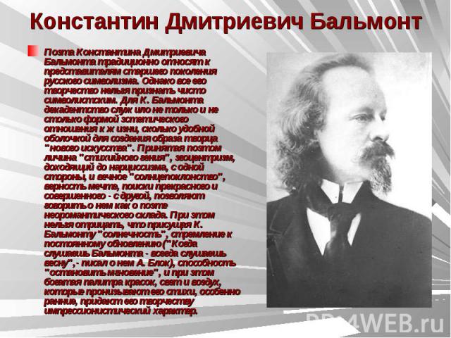 Бальмонт занимает в русском символизме. С одной стороны, он становится одним из