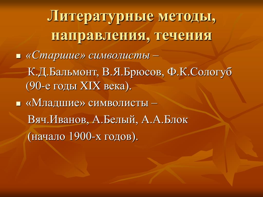 народников. Вскоре Бальмонт выступает как один из зачинателей символизма.