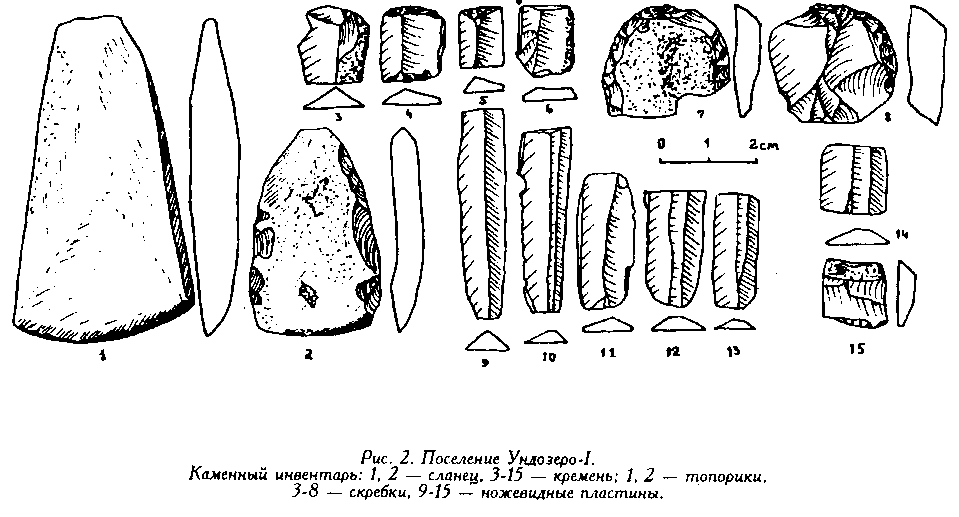 лет в нескольких археологических культурах, объединенных общим происхождением и развитием. Оценка данных о составе инвентаря позволила проследить тенденции в его изменении. Установлено, что во время перехода к неолиту в палеоэкономике этого района заметное место стала занимать охота и переработка ее продуктов. Определено, что совокупный рост производительности охоты и рыболовства в раннем неолите привел к экономической стабильности. Вместе с тем следы сезонных, недолговременных жилищ свидетельствуют, что в это время население еще испытывало потребность в регулярных перекочевках – хозяйство, ориентированное, прежде всего, на добычу зверя, неизбежно предполагает постоянное перемещение вслед за основными источниками пищи.