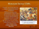 - Поэтому юный князь Александр выступил в этом сражении не только в роли защитника территориальной целостности своего княжества, но и как заступник православной веры.
