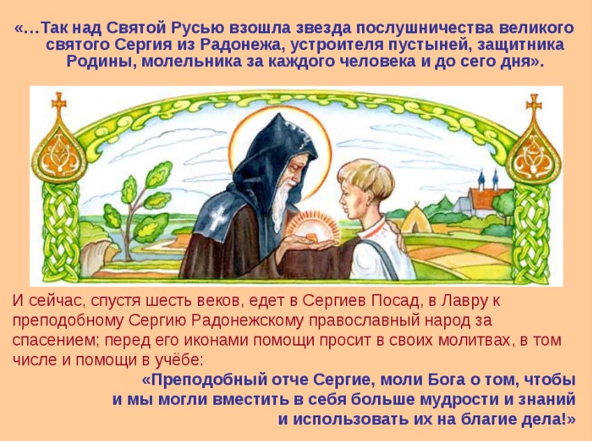 18 июля отмечается памятный день известного, почитаемого святого и чудотворца преподобного Сергия Радонежского. Он основатель монастырей, основоположник русского старчества, собиратель русского народа, помощник в объединении Руси при правлении Дмитрия Донского.
