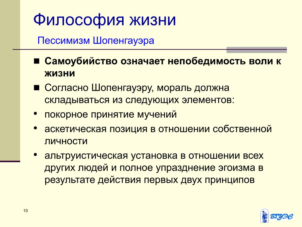 Удивительно интересно, как пессимистическая философия может породить такой здравый взгляд на этику и в то же время являющийся совершенно логическим следствием основных аспектов его философии.