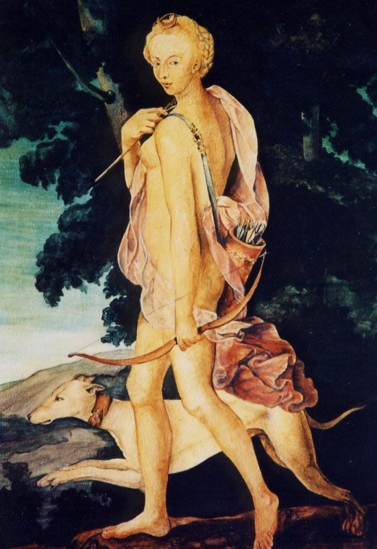 Сестру бога Аполлона римляне называли Дианой, а греки – Артемидой. Они близнецы, Диана была рождена их общей матерью Латоной одновременно с братом. Их соединяла самая тесная дружба, и античная религия придает им одни и те же качества и достоинства. Даже черты лица у них похожи, только у Дианы они женственнее и округленнее.