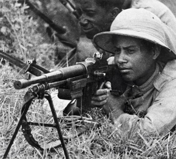 Передовая возле Адиграт в Абиссинии. Абиссинцы с пулеметом в траве. 1935