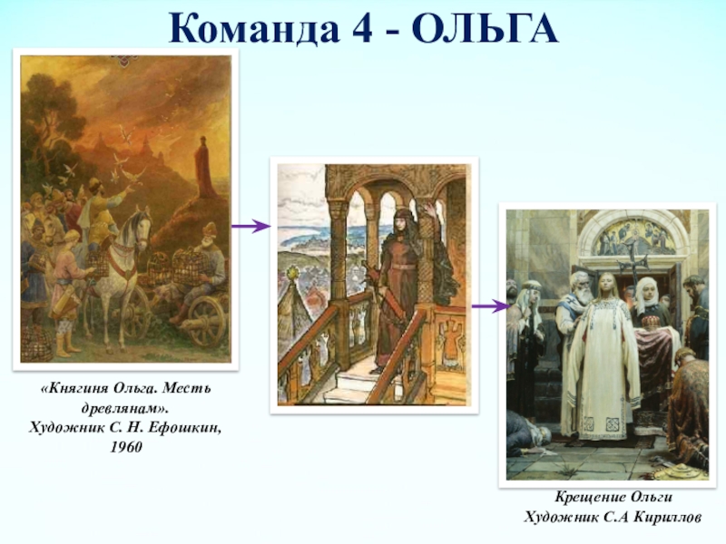 Святая Ольга Михаил НестеровГод 945 н.э. Игорь Киевский после попытки вымогательства дани был только что убит древлянами. Наследник престола Святослав был еще ребенком. Регентство перешло к овдовевшей царице Ольге.