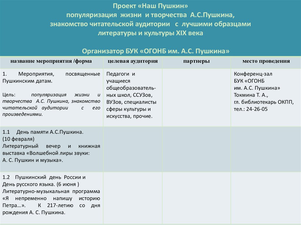 Александр Сергеевич Пушкин — хронологическая таблица, основные даты