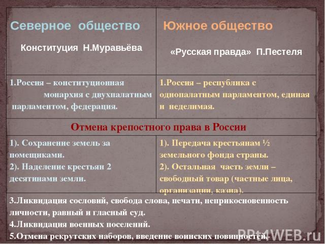 Сравнение «Русской Правды» Пестеля и «Конституции» Муравьёва