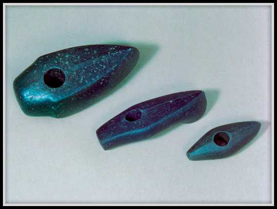 Каменные сверленые топоры фатьяновской культуры. Фотография: tm-arh.ruВо III–II тысячелетии до н. э. на территории Центральной России жили высокие люди европейского типа с широкими лицами. Они относились к общности, из которой позднее выделились балты, германцы и славяне. Эту археологическую культуру назвали фатьяновской — по могильнику, который открыл археолог Алексей Уваров в 1873 году. Ученый обнаружил его у деревни Фатьяново (сегодня — Ярославский район). Второе название — «культура боевых топоров» — возникло благодаря обычаю этих людей класть в мужские могилы топоры, выточенные из камня. Хоронили они, кстати, не только людей, но и животных — в основном медведей и собак. Их фатьяновцы почитали как предков своего рода.