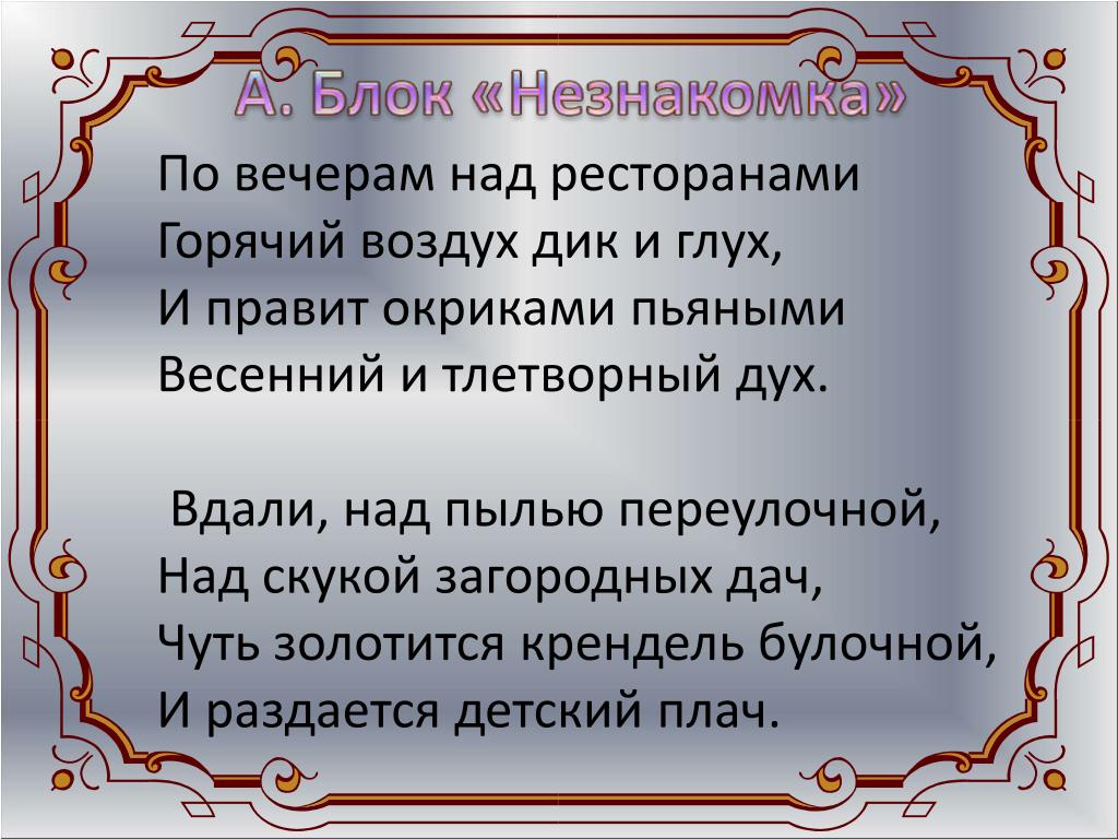 По вечерам над ресторанами (Незнакомка) · Блок · анализ стихотворения